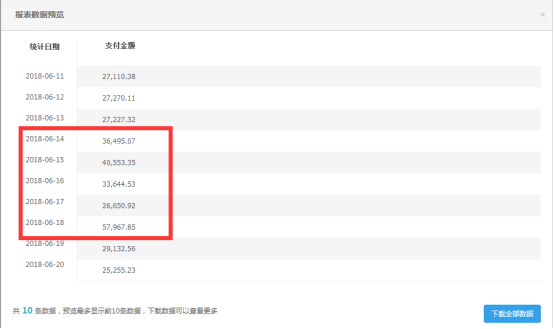 上面这家店铺活动时间是6.14—6.18,上新布局到6.14和6.15,淘宝活动门槛是满200减15,我们直接做的是满200减30,力度大于官方一倍,同时上新的款式已经跟掌柜沟通好,第一天上新一定要筛选比第二天的款好。这里面有两个点比较重要,一是官方6.14预热的时候,我们开始活动,我们提前预热了两天。二是活动力度比官方更大,这么做的目的就是提前收割掉兴趣客户和抢掉同行客户,因为在款式上会存在同质化,所以尽可能的在上新时间上,更早和活动力度比竞店更大,当然这么做的原因是因为售假,没得选择的办法。不这么做的话,活动可能销售额比日常销售额还低。